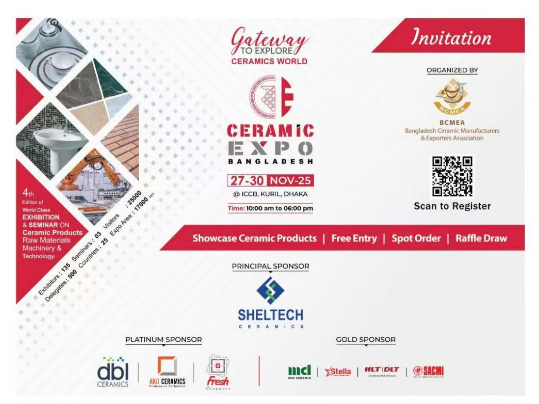 First, we will be attending the Ceramic Expo Bangladesh 2025, taking place from November 27 to 30. Visit us at Booth P - 04 to explore business opportunities, and learn more about the Foshan Uniceramics Expo.